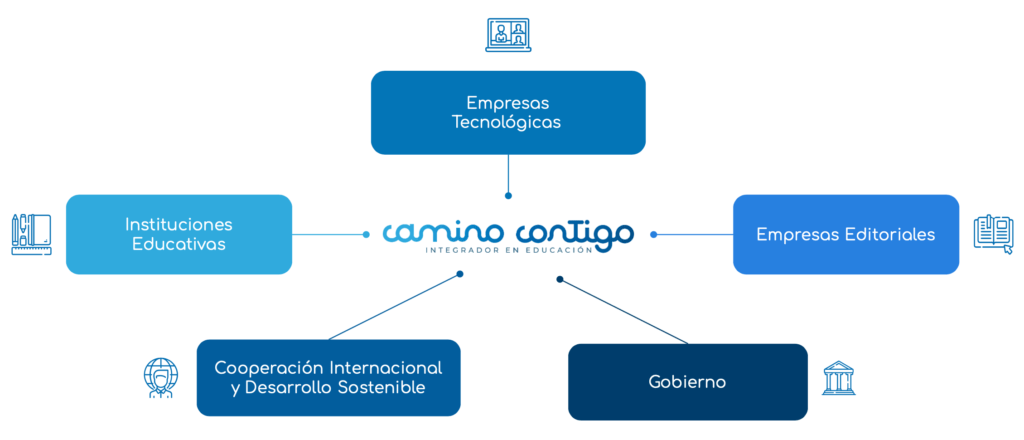 CAMINO CONTIGO tiene las capacidades y alianzas estratégicas para acompañar a sus partners en el proceso de la mejora continua y el contexto de la transformación digital: desde infraestructuras seguras y flexibles, hasta los servicios de edición, capacitación y formación docente.